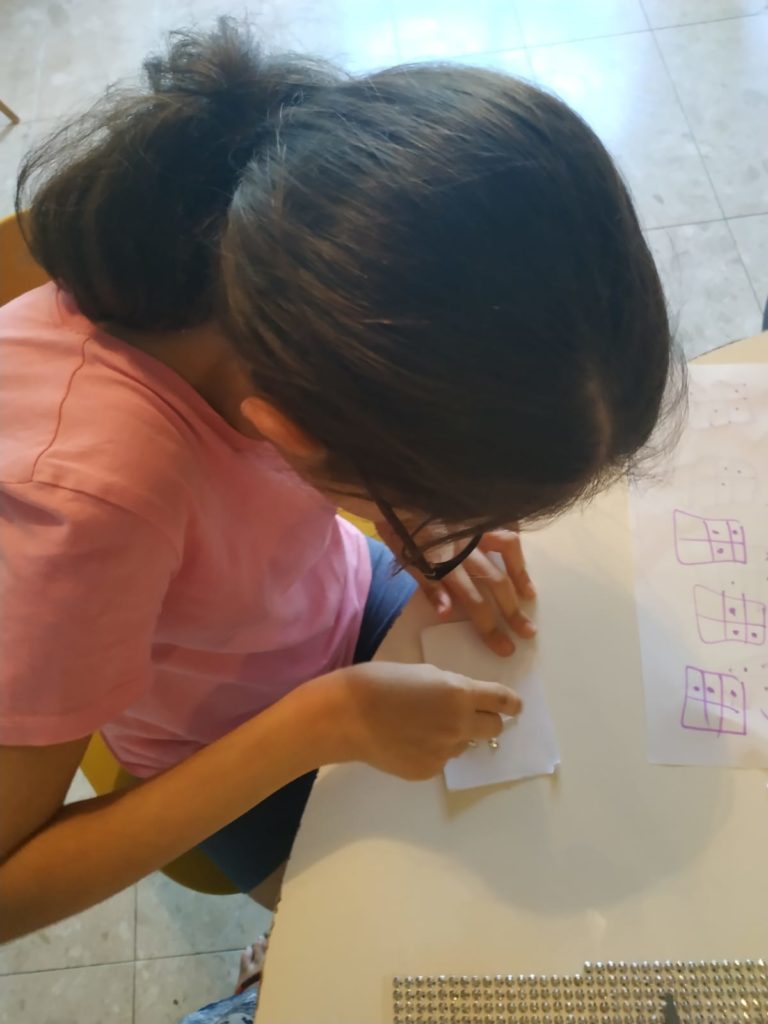 וכמובן שלמדנו כיצד הם קוראים באמצעות כתב ברייל – צפינו בסרטון קצר. וביקרנו בויקיפדיה כדי לראות איך נראה הכתב: